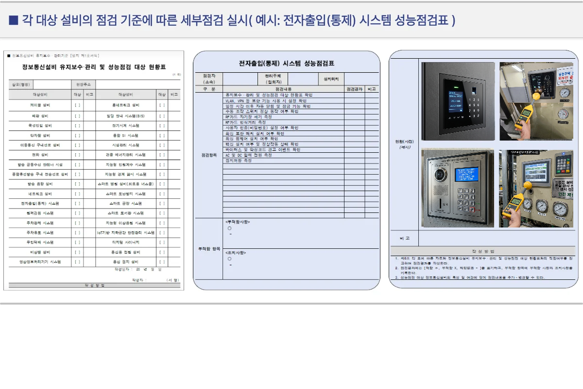| 주요내용 | 정보통신설비의 운전·운용 등에 필요한 성능을 점검 |